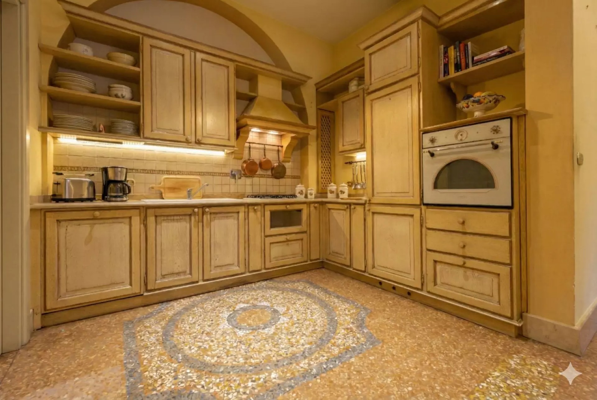 L’appartamento è inserito in un palazzo storico tutelato dalla Soprintendenza delle Belle Arti, che conserva il fascino autentico dell’architettura bolognese. Gli ambienti interni uniscono stile e comfort, valorizzati da un caratteristico pavimento in veneziano che dona eleganza e personalità agli spazi.